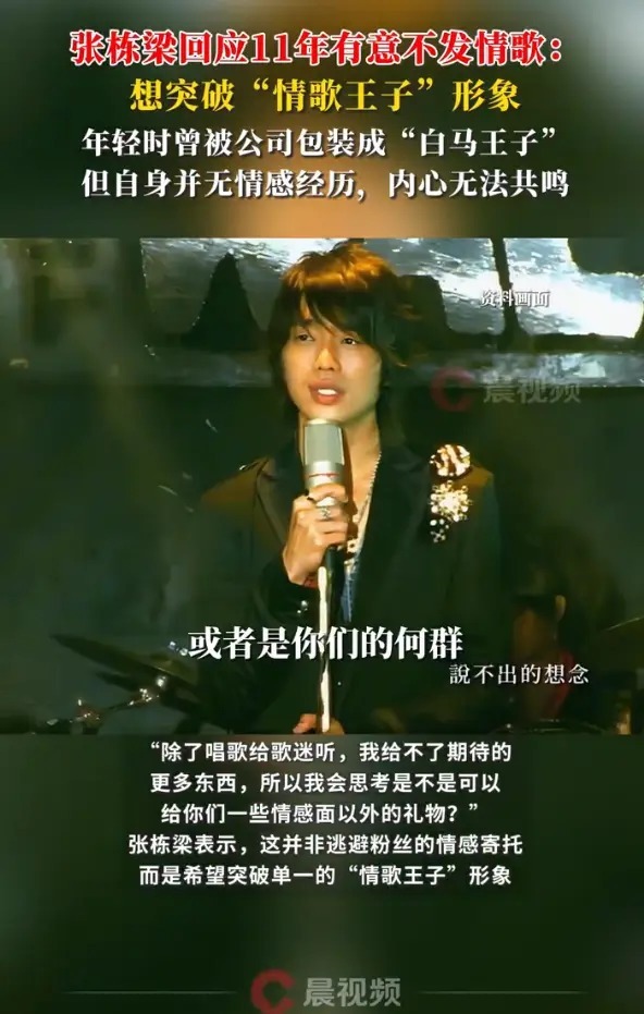 张栋梁表示,这并非逃避粉丝的情感寄托,而是希望突破单一的“情歌王子”形象。张栋梁曾表示自岁出头演唱《寂寞边界》等情歌时并无对应情感经历,歌词中的情绪纯属公司设计的市场定位,与自身真实状态脱节,主动寻求转型突破。